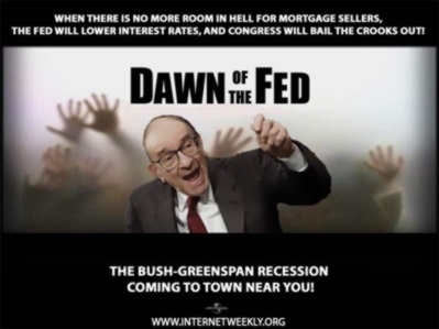 在這裏不免要幫葛老說些話,當大家在吃香喝辣的時候,幾乎所有的人都異口同聲的肯定葛林斯潘的貢獻。然而,現在遇到金融危機時,卻又大聲指責是葛老造成的。試問,沒有這些無恥政客的配合,那些金融機構會毫無警覺的大肆放款嗎?葛林斯潘做了什麼?他不過是整天忙著調升調降利率這種單調的工作而已。